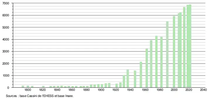 Au dernier recensement, la commune comptait 6 882 habitants, ce qui fait d'elle la deuxième commune la moins peuplée de département après Coubron.