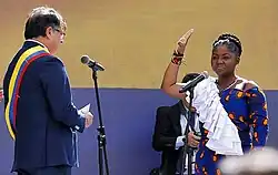 Après avoir ordonné l'arrivée de l'épée, Gustavo Petro fait prêter serment dans ses fonctions la vice-présidente Francia Márquez, cette dernière a juré devant Dieu et ses ancêtres de respecter la loi « jusqu'à ce que la dignité devienne une habitude » (« hasta que la dignidad se haga costumbre »)[35].