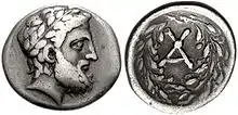 À la mort d'Alexandre le Grand en , date qui marque le début de l'époque hellénistique, son immense empire est partagé entre ses principaux généraux, les Diadoques. Ptolémée, Séleucos et Antigone fondent des dynasties qui règnent sur de vastes royaumes. La prépondérance des rois et des royaumes dans le jeu politique est un changement de taille, reléguant les cités au rang de pions dans l'échiquier politique qui se met en place, généralement dans l'incapacité de s'émanciper. Les rois légitiment leur pouvoir par la victoire et mettent en place un culte royal[55]. Les Lagides (ou Ptolémées) dominent l'Égypte, disposant d'un royaume cohérent territorialement, où ils sont peu inquiétés. Ils étendent également leur influence vers Chypre et le monde égéen. Les Séleucides dominent au départ les pays asiatiques allant du Proche-Orient jusqu'à l'Asie centrale, soit la majeure partie de l'ancien empire perse, mais ils perdent rapidement les territoires des confins et leur empire se concentre surtout sur la Syrie et la Mésopotamie. Des royaumes grecs se constituent sur une partie des anciennes provinces séleucides, en Bactriane (royaume gréco-bactrien) et dans la vallée de l'Indus (royaumes indo-grecs). Après avoir été disputée entre plusieurs prétendants, la Macédoine passe sous le contrôle des Antigonides et redevient une puissance essentiellement européenne, et doit composer avec sa voisine, l'Épire. L'Anatolie est divisée en plusieurs royaumes plus ou moins hellénisés, le plus puissant étant celui de Pergame dirigé par les Attalides. En Grèce et en Asie Mineure certaines cités préservent leur autonomie, mais elles ne sont alors plus en mesure de jouer un rôle politique notable, à l'exception de Rhodes qui dispose d'une flotte puissante. La Grèce continentale voit l'émergence d’États fédéraux (Arcadie, Achaïe, Étolie) qui sont en mesure de tenir tête aux royaumes[56],[54]. La période est marquée par un état de guerre quasi-permanent, entre grands royaumes, cités, fédérations, mais également des puissances extérieures (Parthes, Rome)[57].