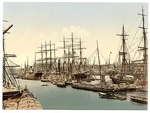 Depuis le milieu du XIXe siècle, Hambourg est le principal centre naval et commercial d'Allemagne[1]. Le port en est le cœur économique. De 1856 à 1886, la quantité de marchandises importées par bateau à Hambourg triple. Cette croissance est principalement due au développement des relations commerciales avec l'Amérique latine, après que ces régions se soient détachées du Portugal et de l'Espagne. À ceci s'ajoute l'émigration vers l'Amérique. Ce concours de circonstances diminue le coût du fret entre l'Amérique et Hambourg, les navires pouvant faire l'aller et le retour les cales pleines.