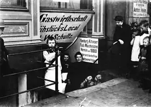 Parmi les signataires de cet appel se trouvent Friedrich Naumann, Heinrich Herkner (de), Ignaz Jastrow (de), Johannes Lehmann-Hohenberg (de), Moritz von Egidy et Ferdinand Tönnies[n 7]. Certains citoyens, qui ne sont pas impliqués directement dans le conflit mais soutiennent les réformes sociales, font l'objet de poursuites pénales[49]. Certes, cet appel rapporte quelques milliers de marks en dons, mais il irrite énormément les entrepreneurs, si bien qu'au sein de leur union, les partisans de la ligne dure reprennent le dessus. Ainsi, le 21 janvier, les entrepreneurs refusent le processus d'apaisement du conflit proposé par les représentants des grévistes[50],[51]. Le directeur de la police Roscher considère l'intervention des professeurs comme une « erreur tactique grossière », parce qu'elle arrive « au plus mauvais moment ». À la vue de ce durcissement du camp des entrepreneurs, la direction de la grève cesse d'exiger la réembauche de tous les grévistes. Mais ce pas vers la conciliation reste sans effet, car les entrepreneurs ne répondent plus aux tentatives de dialogue.