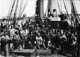 La communauté des travailleurs portuaires est hétérogène. Au moins une quinzaine de groupes se sont formés autour des diverses activités. Après le plus grand groupe, celui des dockers, vient celui des patrons de Schute[n 2], dont le rôle est de transporter sur l'eau les marchandises entre le quai et les navires.