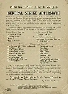 Le , le TUC, par la voix d'Ernest Bevin, annonça pour le à minuit un débrayage général en soutien aux mineurs. Entre le 1er et le , d'ultimes tentatives de négociations entre gouvernement, syndicats et patronat ne débouchèrent sur aucun accord, du fait de la tension sociale et de l'intransigeance des deux parties en conflit[10]. Les antagonismes de classes étaient alors très puissants : les ouvriers étaient tout aussi déterminés au combat que les cercles patronaux et conservateurs qui tenaient à « donner une leçon aux trade-unions, voire à les briser »[11]. La tension n'était pas limitée au secteur des mines : par exemple, à la dernière minute avant l'impression de l'édition du du Daily Mail, les ouvriers imprimeurs refusèrent de publier un éditorial hostile à la grève générale intitulé For King and Country Pour le roi et pour le pays »), dans la mesure où on pouvait y lire qu'« une grève générale n'est pas un conflit confiné à un secteur de l'industrie mais représente une menace pour le gouvernement et l'État de droit »[N 2].