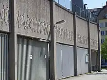 En 1958, la piste d'athlétisme est supprimée, le stade devient un véritable stade de football, les virages Est et Ouest ont été rénovés. Le virage Est reçoit une tribune en béton avec 12 000 places debout, sur le mur extérieur l'artiste Joachim Berthold (de) sculpte un bas relief représentant des personnes pratiquant du sport[7].