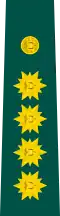 - La Colombie n'est pas membre de l'NATO, donc ce n'est pas une équivalence officielle entre les rangs militaires colombiennes et celles définies par l'OTAN. Le parallèle affiché est approximative et uniquement à des fins d'illustration.