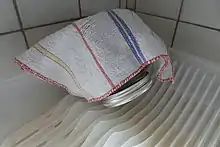 Les graines ayant besoin d'oxygène pour leur développement, il ne faut pas fermer les bocaux hermétiquement. La gaze (ou toile moustiquaire, ou dentelle, ou couvercle-passoire) permet un échange d'air tout en protégeant de la poussière, ou des poils et facilite les rinçages[1].