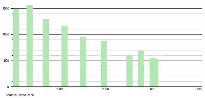 L'évolution du nombre d'habitants est connue à travers les recensements de la population effectués dans la commune depuis 1961, premier recensement postérieur à la départementalisation de 1946. À partir de 2006, les populations légales des communes sont publiées annuellement par l'Insee. Le recensement repose désormais sur une collecte d'information annuelle, concernant successivement tous les territoires communaux au cours d'une période de cinq ans. Pour les communes de moins de 10 000 habitants, une enquête de recensement portant sur toute la population est réalisée tous les cinq ans, les populations légales des années intermédiaires étant quant à elles estimées par interpolation ou extrapolation[10]. Pour la commune, le premier recensement exhaustif entrant dans le cadre du nouveau dispositif a été réalisé en 2005[11].