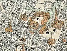 En haut, au centre : le marché au poisson (Visch Marckt).