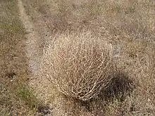 - Les zones dégradées par les incendies (naturels ou non) sont d'abord recolonisées par des herbacées et certains buissons, comme le Brome des toits (espèce introduite), Halogeton (de la famille des Amaranthaceae), Salsola tragus (la soude roulante constitue des buissons qui peuvent se détacher et rouler au gré du vent), des Brassicaceae (Lepidium perfoliatum ou Passerage perfoliée, Descurainia pinnata ou Moutarde tanaisie verte), une Ranunculaceae (Ceratocephalus ou Ranunculus testiculatus) ; Chrysothamnus, Tetradymia et Xanthocephalum sont des buissons qui remplaceront momentanément l'Artemisia tridentata, qui ne repousse pas après un incendie et doit recoloniser ces zones à partir de graines[3].