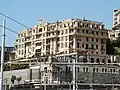 Vers la fin des années 90, il a été acquis par une entreprise qui a effectué les travaux de rénovation, en conservant son esthétique d'origine, pour l'utiliser comme siège d'appartements privés, un supermarché, une banque. Une salle de jeux Bingo a été ouverte au rez-de-chaussée. Conçu au début du XXe siècle par l'architecte suisse Arnold Bringolf, il se démarque surtout par sa façade riche en décorations néo-gothiques de l'architecte Gino Coppedè (assisté de l'ingénieur Giuseppe Predasso). L'inauguration de ce qui était le Gran Hôtel Miramare & de la Ville (c'est le nom officiel) a eu lieu le 12 décembre 1908. Si jusqu'aux premières années de l'ère moderne, la côte ouest était la destination de la noblesse anglo-saxonne ou d'Europe centrale, jusqu'à l'extrême périphérie de Pegli, avec ses palmiers et ses promenades le long de la mer, depuis 1920 le mouvement de visiteurs distingués du centre de Gênes sont devenus plus massifs.