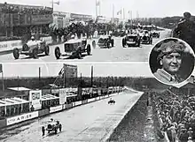 Grand Prix de l'A.C.F. 1929, départ puis course (médaillon Grover-Williams, vainqueur pour la seconde fois, bas Williams devant G. Boillot).