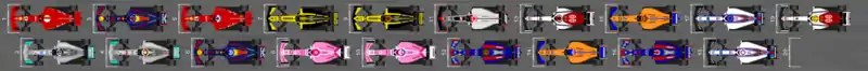 - le classement est établi au 68e des 70 tours prévus en raison d'une erreur de communication entre la plate-forme de départ, où la top model Winnie Harlow tient le drapeau à damier, et la personne chargée du départ et de l'arrivée. Winnie Harlow l'agite trop tôt sous le nez de Sebastian Vettel, averti de la méprise par son stand, qui continue toutefois sa course par sécurité[1] ;