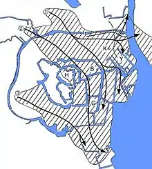 La restauration du château du shogun fut réalisée en dernier. La zone située autour de celui-ci a été réorganisée de manière à laisser plus d'espaces entre les bâtiments comme des coupe-feu. Des maisons d'habitation furent éloignées du château, et un certain nombre de temples et de sanctuaires ont été reconstruits vers les bords de la rivière.