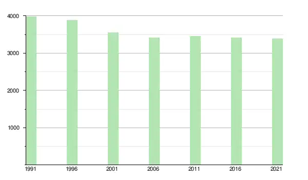 Le recensement de 2016 y dénombre 3 408 habitants[8], soit 1,4 % de moins que celui de 2011[9].