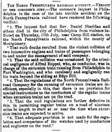 Le North Pennsylvania Railroad suspendit ses activités le dimanche suivant, jour des obsèques de plusieurs victimes à proximité de sa gare, à la fois en signe de recueillement, et pour éviter les troubles[32].
