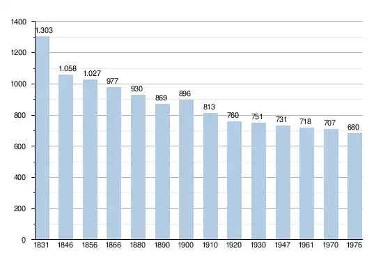 - Sources : INS, Rem. : 1831 jusqu'en 1970 = recensements, 1976 = nombre d'habitants au 31 décembre.