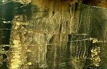 On rencontre encore sur le site un autre animal mythique plus petit et moins bien conservé, un bovidé à trompe associé à un archer en trait poli-miroir, qui peut passer inaperçu mais apparaît plus lisible sous certains éclairages, des bubales et des autruches.