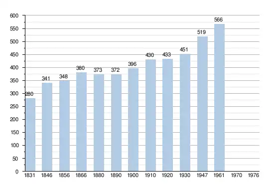 - Sources : INS, Rem. : 1831 jusqu'en 1970 = recensements, 1976 = nombre d'habitants au 31 décembre.