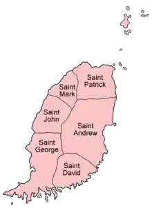 La Grenade est divisé en six paroisses (parishes) et une dépendance (dependency).