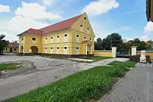 Le séchoir à maïs (kotarka), quant à lui, situé un peu en retrait de l'alignement de la rue, est un bâtiment très allongé construit dans l'esprit du classicisme[2]. Autrefois construit en bois, il était édifié au-dessus du sol et reposait sur des piliers en pierres ; il possédait un porche ouvert et une colonnade avec des colonnes aux chapiteaux doriques supportant une architrave ; au début du XIXe siècle, le porche a été fermé et cette partie est devenue un espace d'habitation[2]. Le toit à pignon est recouvert de tuiles[2].
