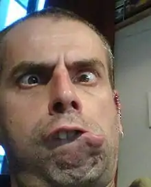 Une grimace est une contorsion du visage participant à la communication non verbale. Réfléchie ou involontaire, la grimace peut avoir une visée humoristique mais peut aussi être la manifestation d'une douleur ou d'une émotion qu'il est plus rapide d'exprimer ainsi.