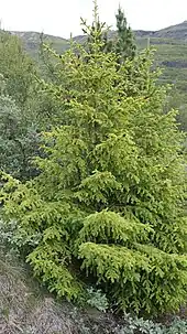 La végétation du Groenland est constituée en très grande majorité de toundra, une végétation basse et pauvre composée de mousses et herbes poussant dans les zones polaires qui occupent une grande partie du Groenland hors inlandsis. Le retrait de l'inlandsis a mis au jour de très nombreuses cuvettes lacustres se colonisant progressivement par une végétation de type tourbière, à l'exception des cas où l'évaporation l'emportant, la concentration en sels permet l'implantation d'une flore halophile en périphérie. La grande végétation ne peut en général pas y pousser, car le sol est trop gelé en profondeur. Il ne pousse que quelques arbustes, tels les bouleaux rampants, qui sont une adaptation de la végétation aux conditions très rudes du milieu, en particulier des vents desséchants. Il n'existe que deux petites zones à l'abri des vents qui sont pourvues d'arbres, toutes situées dans le Sud de l'île. La première, la vallée de Qinngua, est la seule forêt naturelle groenlandaise et abrite principalement des espèces de bouleau pubescent (Betula pubescens) et de saule à feuilles grises (Salix glauca) poussant jusqu'à une hauteur de sept à huit mètres[41]. La seconde est l’Arboretum Groenlandicum, un arboretum à Narsarsuaq abritant sur quinze hectares des arbres de taïga arctique tels que le mélèze de Sibérie, le pin tordu, l'épinette blanche et l'épinette de Sitka[42],[43].