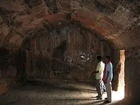 .jpg.webp) Couloir d'entrée de la grotte de Sudama. Couloir d'entrée de la grotte de Sudama.