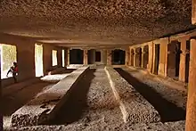 La grotte n°3 est une Chaitya ou salle de prières, elle comporte une colonnade de 34 piliers et une stupa haute de 5 m, taillés à même la roche. Cette grotte est la plus grande du site, ses dimensions sont de 13 mètres de large pour 28 mètres de profondeur[7]. Elle a été creusée entre le IIe siècle et le VIe siècle. Le porche d'entrée est encadré de deux bouddhas hauts de 7 mètres.