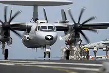 Le Grumman E-2 Hawkeye est un avion de surveillance aérienne et de commandement aéroporté ou AWACS[2] développé par le constructeur américain Grumman (absorbé dans Northrop Grumman depuis 1994) et initialement embarqué à bord des porte-avions de la marine américaine. Mis en service en 1964, il a depuis été exporté vers plusieurs pays.