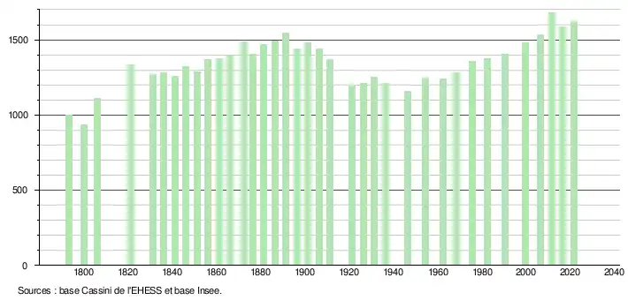 1 622 hab. (2021 en augmentation de 0,68 % par rapport à 2015)