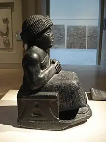 Statue de Gudea dédiée au dieu Ningishzida, v. 2120 av. J.-C., musée du Louvre[1] | |