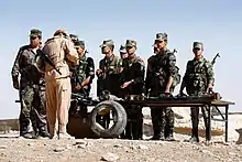 Les chabiha auraient été créés par Bassel el-Assad dans les années 1980 pour être utilisés par le gouvernement en période de crise[116]. On les a décrits comme « des paramilitaires alaouites de mauvaise réputation, accusés d'être les hommes de main du régime d'Assad[117] », des « mercenaires loyaux envers Assad[118] » et selon l'Arab Center for Research and Policy Studies, basé au Qatar, « des gangs à demi hors-la-loi, composés d'hommes de main proches du régime[118] ». Fin 2012, les chabiha fusionnent avec plusieurs autres milices pour former la Jaych al-Shabi, qui devient ensuite les Forces de défense nationale[8].