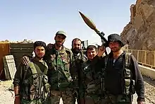 Dès 2013, l'armée syrienne est affaiblie par de très lourdes pertes. Les unités d'élite sont décimées et des troupes sunnites sont maintenues en garnison dans les casernes de peur qu'elles ne passent à la rébellion. Les officiers se muent en seigneurs de guerre vivant du racket et des trafics. Progressivement, l'armée syrienne est supplantée par des milices et des troupes étrangères alliées[109].