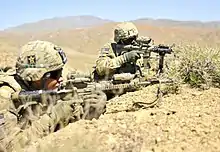 - Le Commandement Est sous la direction des États-Unis (19 900 hommes au , 68 000 hommes au )[65] qui comporte les villes de Ghazni, Bâmiyân et Jalalabad, ainsi que les régions montagneuses frontalières du Pakistan.