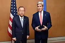 Le secrétaire général de l'ONU, Ban Ki-moon, souligne et déplore qu'« en 2009, la communauté internationale se soit déjà réunie » en Égypte pour la reconstruction de Gaza et qu'elle soit à nouveau réunie avec le même ordre du jour. « Le cycle construction-destructions se poursuit, il empire ». Le secrétaire d'État américain John Kerry demande un retour aux négociations entre Israéliens et Palestiniens soulignant qu'un « un cessez-le-feu, ce n'est pas la paix » et que les parties en conflit doivent faire des choix difficiles afin d'assurer une paix durable. Similairement, Catherine Ashton, la chef de la diplomatie de l'Union européenne souhaite que ce soit la dernière fois qu'il faille appeler la communauté internationale à reconstruire Gaza[86].