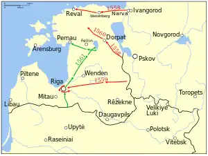 La guerre de Livonie est un conflit qui oppose de 1558 à 1583 la Russie, le Danemark, la Suède et l'union du grand-duché de Lituanie et du royaume de Pologne[1]. L'enjeu du conflit est le contrôle du territoire de la Confédération livonienne (actuelles Estonie et Lettonie).