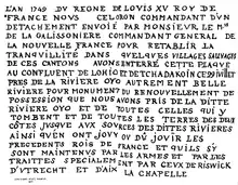 À cette époque, la France possédait la grande majorité de la région explorée du nouveau continent, plus de la moitié de l'Amérique du Nord. Elle comptait une partie du Québec actuel (la baie d'Hudson et Terre-Neuve n'étaient pas sous contrôle français depuis 1713) plus une grande partie de l'actuel centre des États-Unis. Sa frontière s'étendait, au nord, de la limite de l'actuel Labrador, faisait une parabole passant au-dessous de la baie James pour aller contourner le lac Manitoba et le lac Winnipeg, au centre de l'actuel Manitoba, et descendait jusqu'au golfe du Mexique, en suivant, plus à l'ouest, le fleuve Mississippi. Ces territoires immenses formaient une écharpe longue d’environ 4 000 kilomètres et large de 600 à 2 000 kilomètres[3].