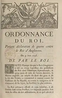 Pendant toute l’année 1754 la tension ne cesse de monter, mais Londres et Versailles restent officiellement en paix. Au printemps 1755, les hostilités s’engagent sans déclaration de guerre lorsque la Royal Navy tente d’intercepter au large de Terre-Neuve un gros convoi de quatorze bâtiments porteur de 3 à 4 000 soldats à destination des garnisons du Canada[49] (voir aussi ci-dessus). C’est un semi échec : deux navires seulement sont capturés (un escorteur et un transporteur), mais à l’automne, la marine britannique réussit une immense rafle en s’emparant de trois-cents navires de commerce dans l’Atlantique[53]. Elle capture ainsi plus de 6 000 marins qu’elle refuse de relâcher pour affaiblir le fragile réservoir humain de 50 000 matelots seulement dont dispose la France[54].