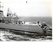 En 1971, les Islandais décidèrent d'étendre leurs zones de pêches exclusives à partir du de 12 à 50 milles nautiques (92,6 km)[D 3]. Certains pays, comme la Norvège ou la Belgique, trouvèrent un accord avec l'Islande, ce qui leur permettait de continuer à pêcher dans les eaux islandaises[10]. Ce ne fut néanmoins pas le cas de la plupart des pays, comme le Royaume-Uni : la deuxième guerre de la morue, qui fut la plus âpre, dura de à . La marine britannique, assistée par l'Allemagne de l'Ouest[N 4], n'envoya, dans un premier temps, que des remorqueurs[N 5], chargés officiellement d'empêcher le harcèlement par les garde-côtes islandais.
