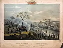 Le au matin, alors que tout est prêt pour l'offensive, le lieutenant de Cerjat est envoyé comme émissaire auprès des autorités de la ville de Fribourg, porteur d'un message du général qui leur dévoile son plan et ses forces, leur enjoignant de se rendre pour éviter une bataille meurtrière[12]. Dans la matinée, le gouvernement fribourgeois demande un armistice pour la journée, qui sera accepté. Malheureusement, à la suite d'une mauvaise coordination des ordres, les soldats vaudois situés en face de la redoute de Bertigny partent à l'assaut de celle-ci dans la journée après quelques échanges de coups de canon. Ils doivent se retirer avec cinq morts et quelque cinquante blessés, dont trois mourront de leurs blessures. Plusieurs défenseurs fribourgeois sont également blessés ou tués.