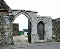- Le manoir seigneurial  Inscrit MH (1954)[24], fondé en 1304 sous l'autorité de l'abbaye de Jumièges et dont il reste le double portail à arche gothique, le pigeonnier et une très belle grange dîmière visible de la rue en fond de cour. Inscrit MH (1954)[24], fondé en 1304 sous l'autorité de l'abbaye de Jumièges et dont il reste le double portail à arche gothique, le pigeonnier et une très belle grange dîmière visible de la rue en fond de cour.