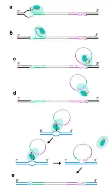 - une séquence palindromique supplémentaire située avant l'extrémité 3' du transposon, impliquée dans la reconnaissance du site de terminaison de l'hélentron,