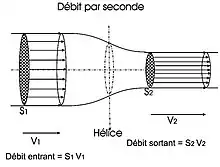 Dans un système propulsif où les hélices sont incluses dans un tube (tunnel), il est nécessaire que le tube soit court, ou agrandi aux extrémités, afin de ne pas diminuer le rendement propulsif.