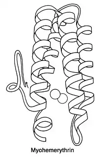 L'hémérythrine est une métalloprotéine oligomérique assurant le transport de l'oxygène O2 chez des invertébrés marins tels que les siponcles, les priapulides, les brachiopodes et chez un unique genre de polychètes, Magelona. La myohémérythrine est une métalloprotéine monomérique présente dans les muscles de ces invertébrés marins. Hémérythrine et myohémérythrine sont essentiellement incolores lorsqu'elles sont désoxygénées, et virent au rose violacé lorsqu'elles sont oxygénées.