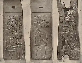 Chaque panneau, d'un mètre de hauteur sur quarante centimètres de largeur servait de fausse porte située dans chacune des onze niches du mur ouest du tombeau.
