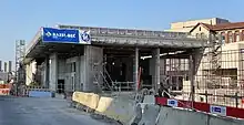 Eva Jospin réalise l'œuvre d'art de la station en coopération avec l'architecte Jean-Paul Viguier[3]. S'inspirant du film Fellini Roma où les vestiges antiques enfouis voient le jour à la construction du métro de Rome, l'œuvre en deux parties à l’extérieur et à l’intérieur de la station comporte des émergences, notamment des copies en bronze des œuvres de carton d'Eva Jospin[4].