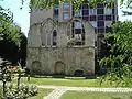 Les ruines du couvent des Cordelières devant les bâtiments de l'hôpital Broca