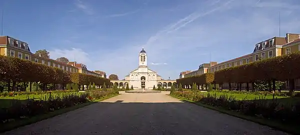 Vue panoramique de la cour principale, en regardant vers la chapelle Notre-Dame-de-l'Annonciation.