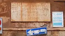 L'édifice conserve de nombreuses séries de plaques commémoratives de sa longue histoire, de celle du cardinal Colonna datant du XIVe siècle à celles suivant la proclamation du royaume d'Italie, notamment celles de 1878, témoignages importants d'autorités religieuses et civiles, scientifiques et de citoyens ordinaires[103]. La plaque d'entrée contient une citation du docteur Augusto Murri.