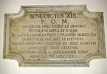 Les travaux se sont déroulés rapidement; la première pierre a été posée le 14 mars 1725, et l'église a été consacrée par Benoît XIII le 6 octobre 1726, comme le montre la plaque commémorative à l'intérieur de l'église elle-même et comme en témoigne le journal de Don Emilio Lami, bien qu'en réalité l'ouverture effective aux malades a eu lieu deux jours plus tard, le 8 octobre.